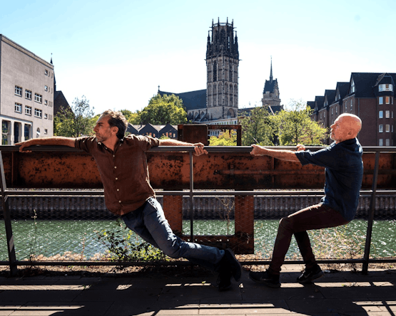 Doch dieses Mal ist es anders als sonst: Gleich zwei Stücke, die über ein Jahr hinweg gewachsen sind, feiern im März ihre Premieren auf Duisburger Bühnen. Was uns erwarten wird, erzählen Avi und Sergio am gemütlichen Küchentisch ihrer Wirkungsstätte – einem Ort mit hohen Decken und einladenden Dachschrägen. Im „The Roof-TanzRaum“, ihrem großzügigen Hinterhof-Studio nahe des Innenhafens, leben, trainieren, tanzen sie. Und: Sie öffnen es! Während der Akzente-Zeit erhalten Interessierte die Gelegenheit, das Kreativzentrum in intimer Atmosphäre kennenzulernen.