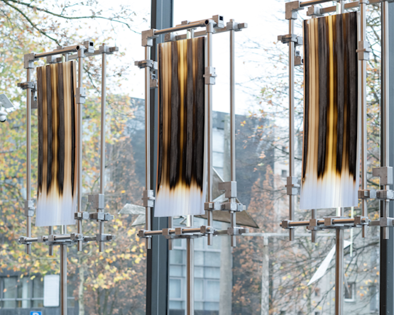 Eines ihrer größten Themen, die sie in Skulpturen, Fotografien, Installationskunst aufgreift: das Dazwischen sein. Zwischen Welten, zwischen Kulturen, zwischen allem. „Ihr gelingt es, Kunst vielschichtig, poetisch und philosophisch neu zu denken und politisch zu inszenieren, indem sie eine visuelle Sprache entwirft, die vormals militärische Strukturen in eine entmilitarisierte Ästhetik überführt und somit das globale Narrativ von Macht und Dominanz hinterfragt. „Gleichzeitig bleibt sie in der Form offen, gibt keine klaren Antworten vor. So entsteht Raum über die Bedeutung von Demokratie, Freiheit und Grenzen nachzudenken – geprägt von den Erfahrungen des Betrachters“, so Eul.